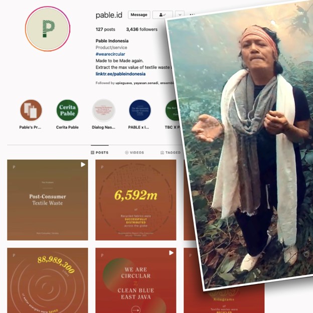 Pable Indonesia, praktisi circular fabric dengan semangat #wearecircular, menanggulangi perubahan iklim dengan pengolahan limbah kainnya. Aksesori kain pakaian Anda Perdana adalah tekstil Pable. Beberapa merek ramah lingkungan juga sudah menerapkan produknya sebagai bahan dasar produk berbahan dasar kain.
